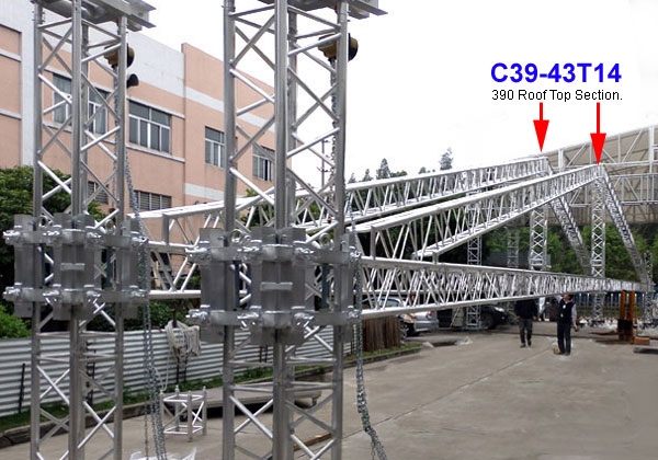 Aluminum Truss >> Quatro 390 Truss >> C39-43T14, 3 Way 14º Top Beam Angle. (390斜頂棚架-頂部三通)